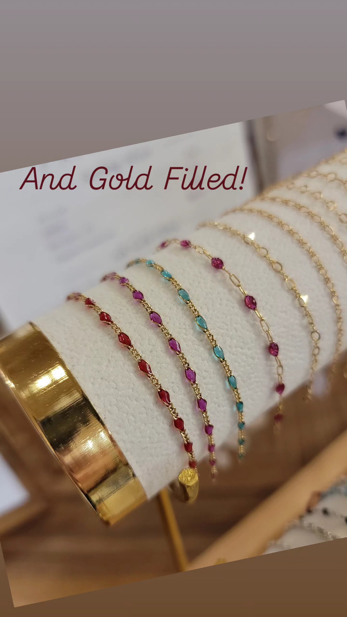 Solid Gold chain is available by request/special order. Pricing is based on the trading price of gold at the time of order and will range from $110+ for a bracelet.