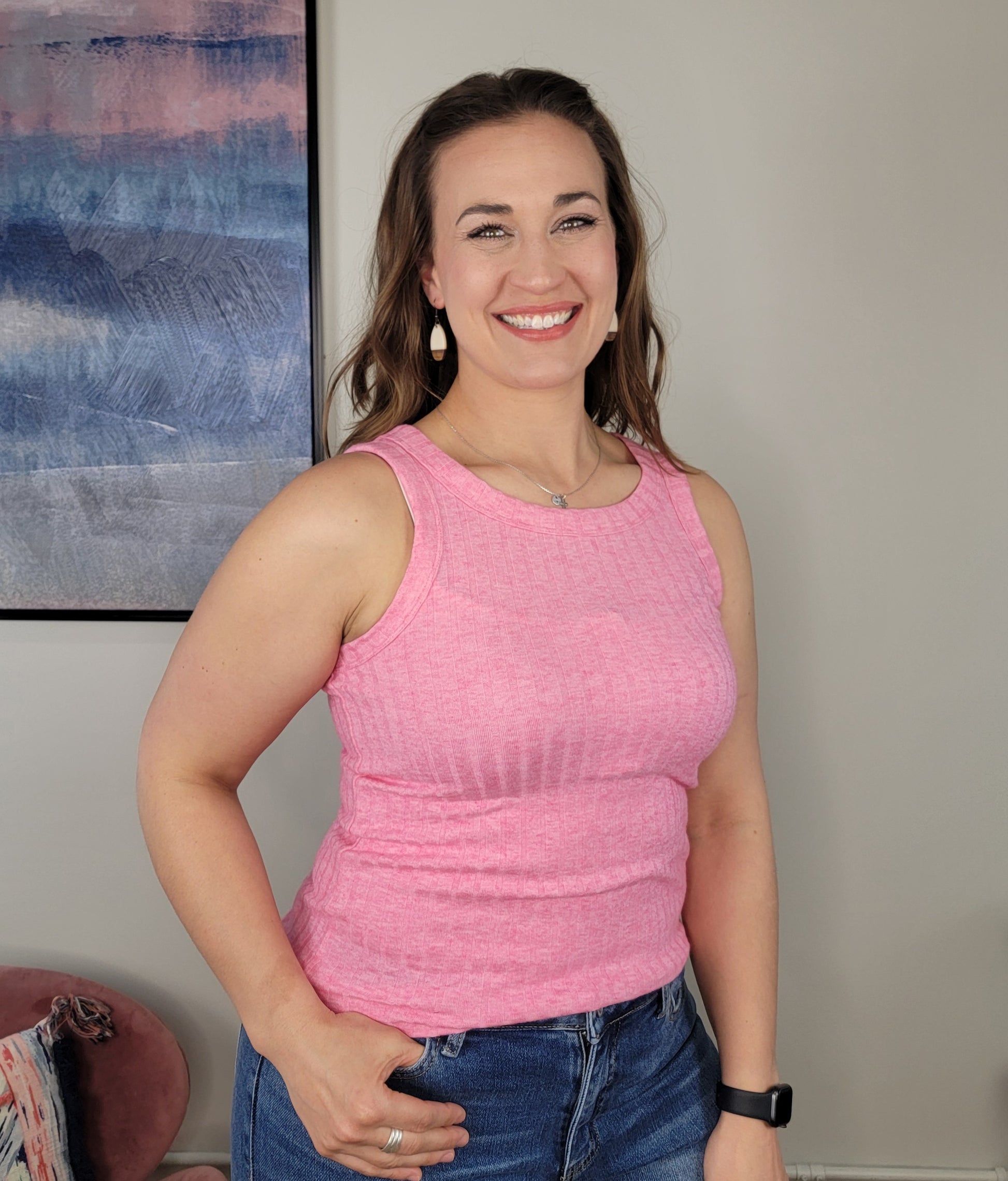 Super soft, ribbed tank top. These are a more fitted style, perfect for wearing alone or layering this summer.