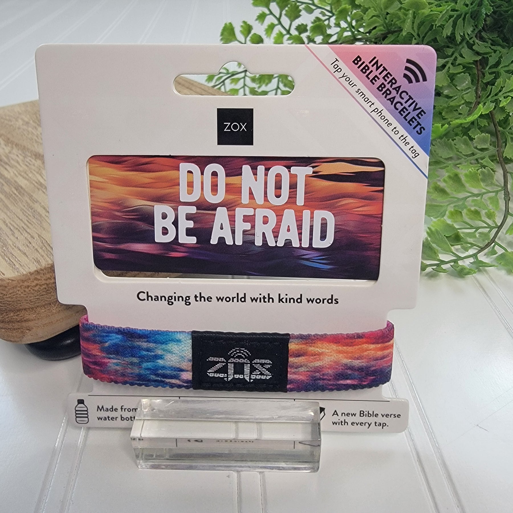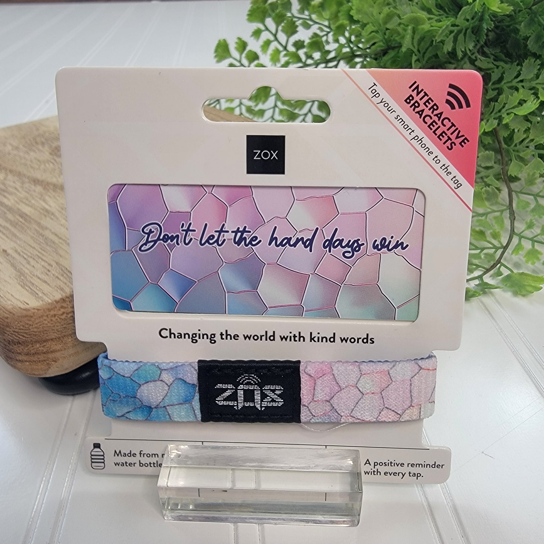 Interactive bracelets from ZOX. These stretchy, elastic bracelets with colorful designs and impactful messaging are made from recycled water bottles. They are reversible, waterproof, and easy to use with no special app required. Choose from a wide variety of styles and messages.